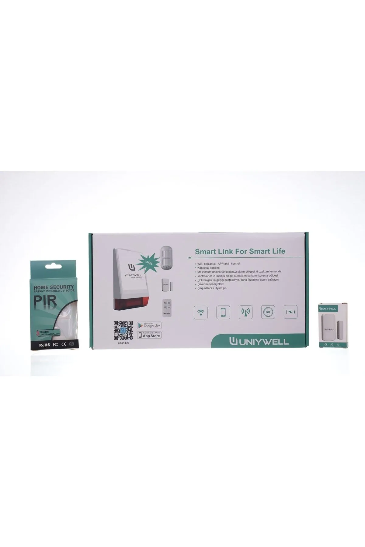 WF DIŞ ORTAM SİREN ALARM SETİ TEKNİK ÖZELLİKLERİ Zone Sayısı: 99 Zone kadar yükseltilebilir Wifi Akıllı Alarm Paneli Mobil Uygulama: SMART LİFE VE TUYA SMART mobil uygulama uyumludur Set İçeriği: *1 Adet Dış Ortam Wifi Akıllı Alarm Paneli (Dahili Siren) *1 Adet Kablosuz Pır, *1 Adet Kablosuz Manyetik Kontak, *1 Adet Uzaktan Kumanda Güç kaynağı: DC 5V / 500mA Yedek güç: pil: 18650 Lityum pil 3